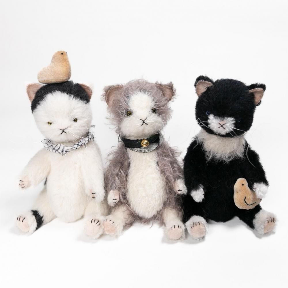 ドイツ製モヘア/ミニチュアファー/ドイツ製グラスアイ/化繊綿/グラスビーズ/ハードボードジョイント/リトアニアリネン(リボン)