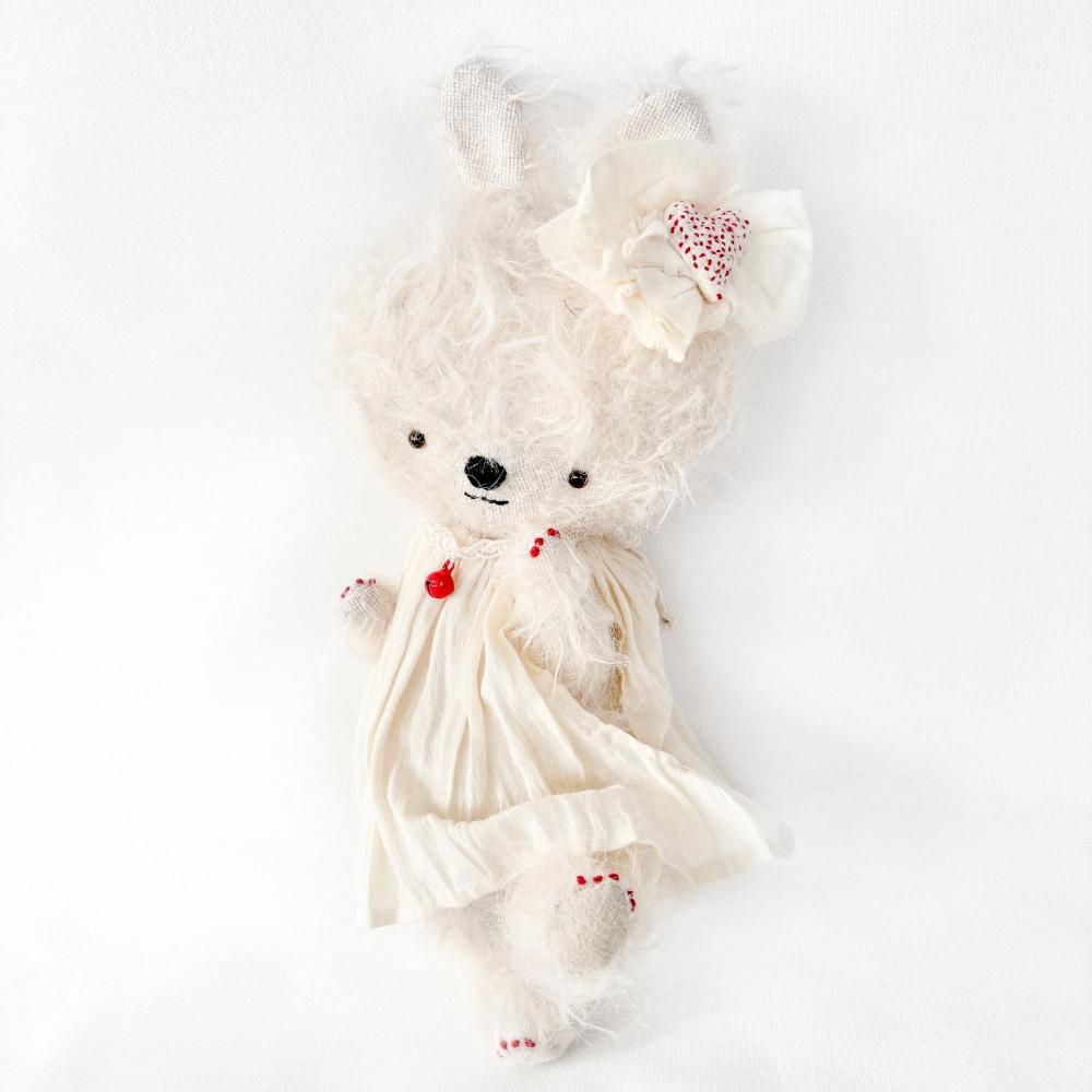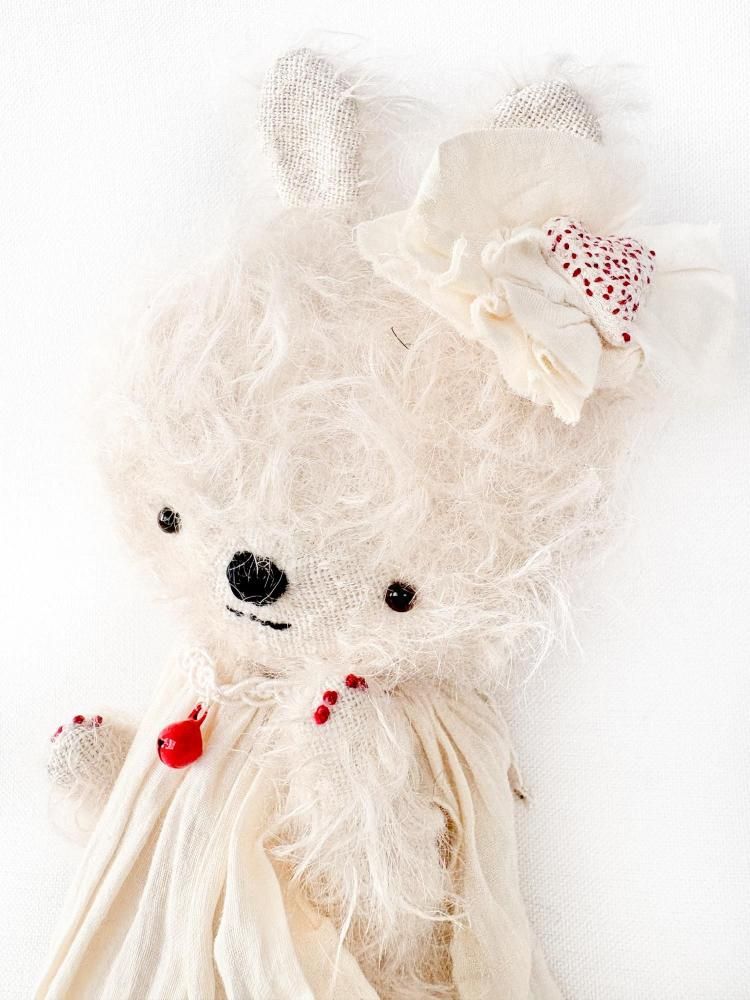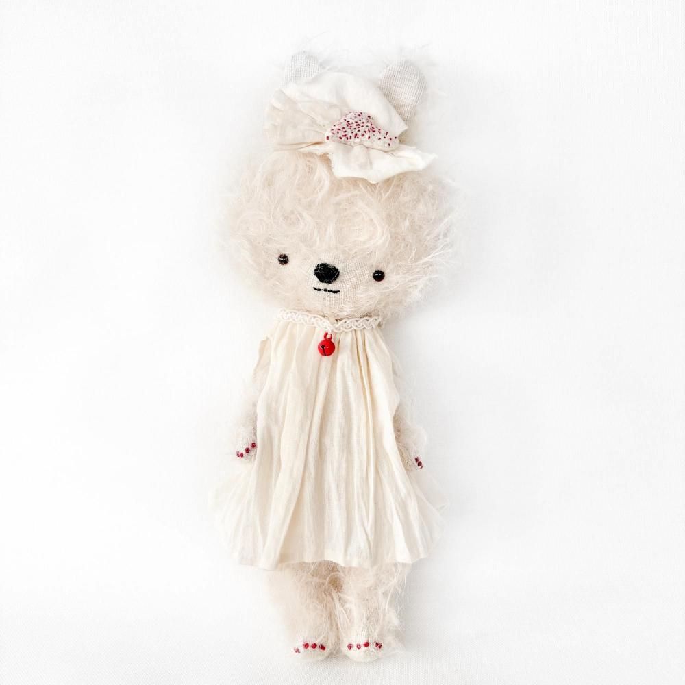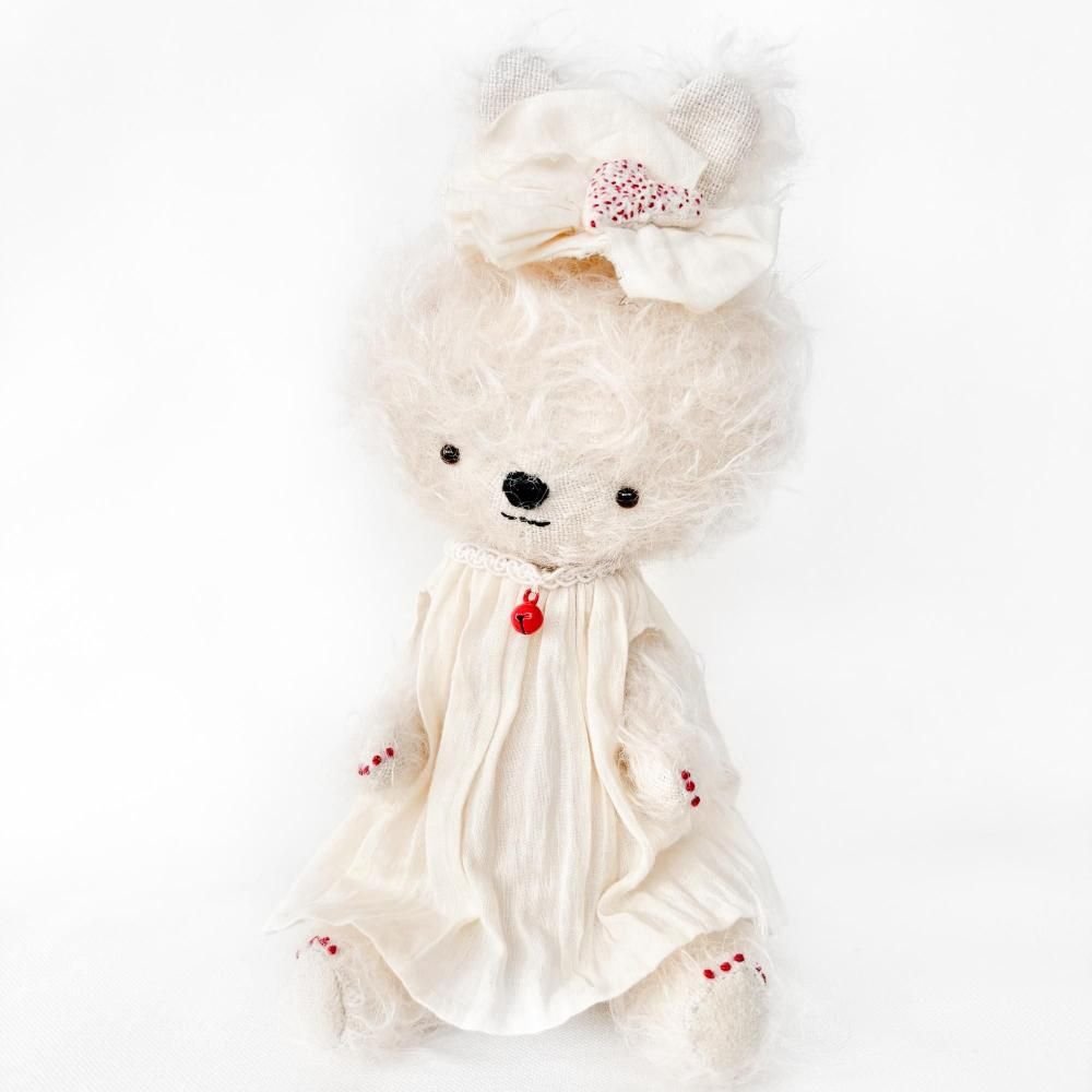 カールモヘア、グラスアイ、ジョイント(首、手、足)、ステンレスボール、化繊綿、コーヒー染木綿